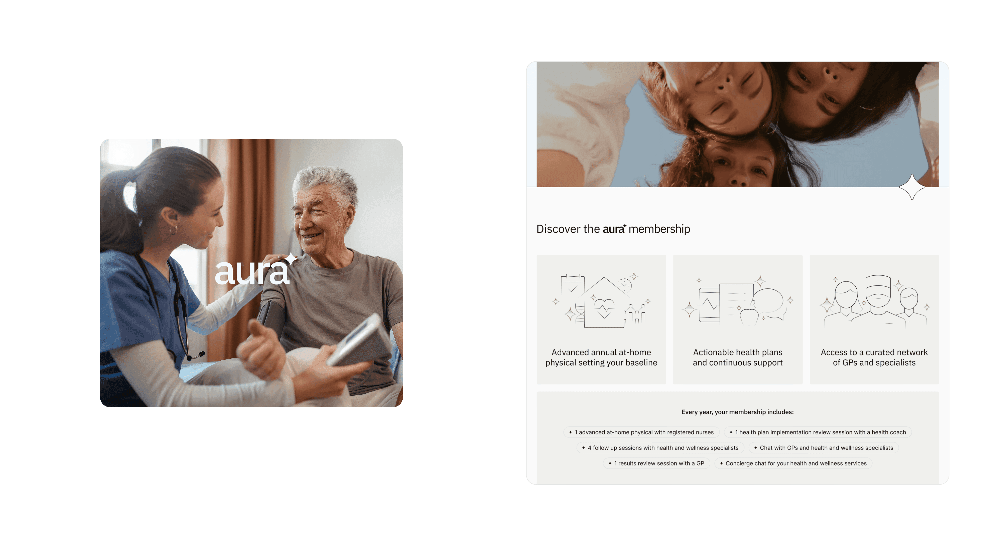 Users receive science-backed recommendations through a member portal, access to a curated list of specialists and GPs for immediate care, and ongoing support from a Nurse Health Coach. The service includes biomarker monitoring technology for real-time updates and close monitoring of health data. Aura is operated by Aura USA Inc. and is currently available in New York City, with plans to expand to additional cities.
