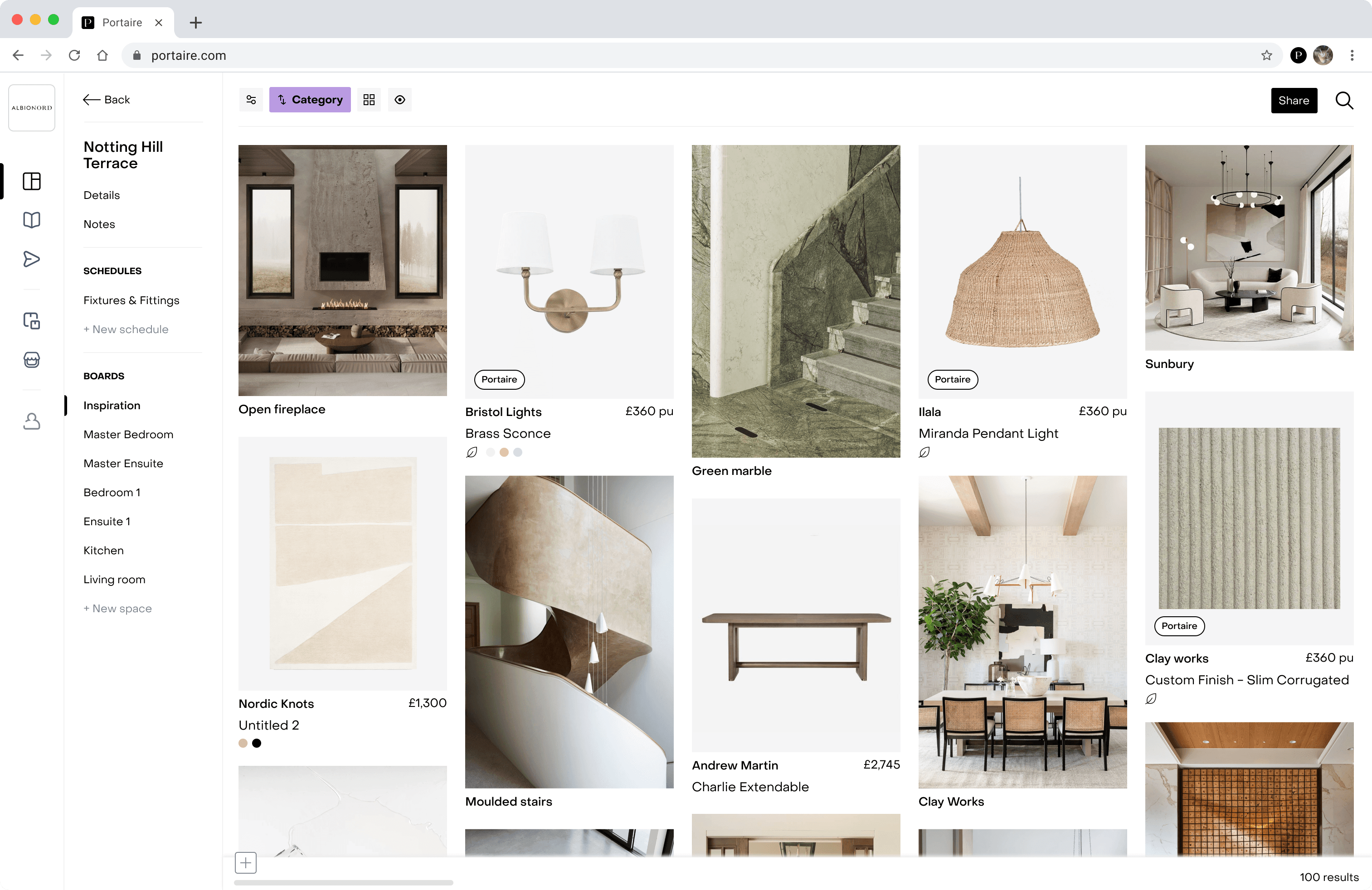 Portaire is a UK-based B2B SaaS platform for interior designers, offering a curated directory of over 40,000 architectural and interior design products from luxury brands across the UK and Europe. The platform streamlines the entire design workflow—from product discovery and sourcing to client presentations, collaboration, and procurement—replacing fragmented tools and manual processes.